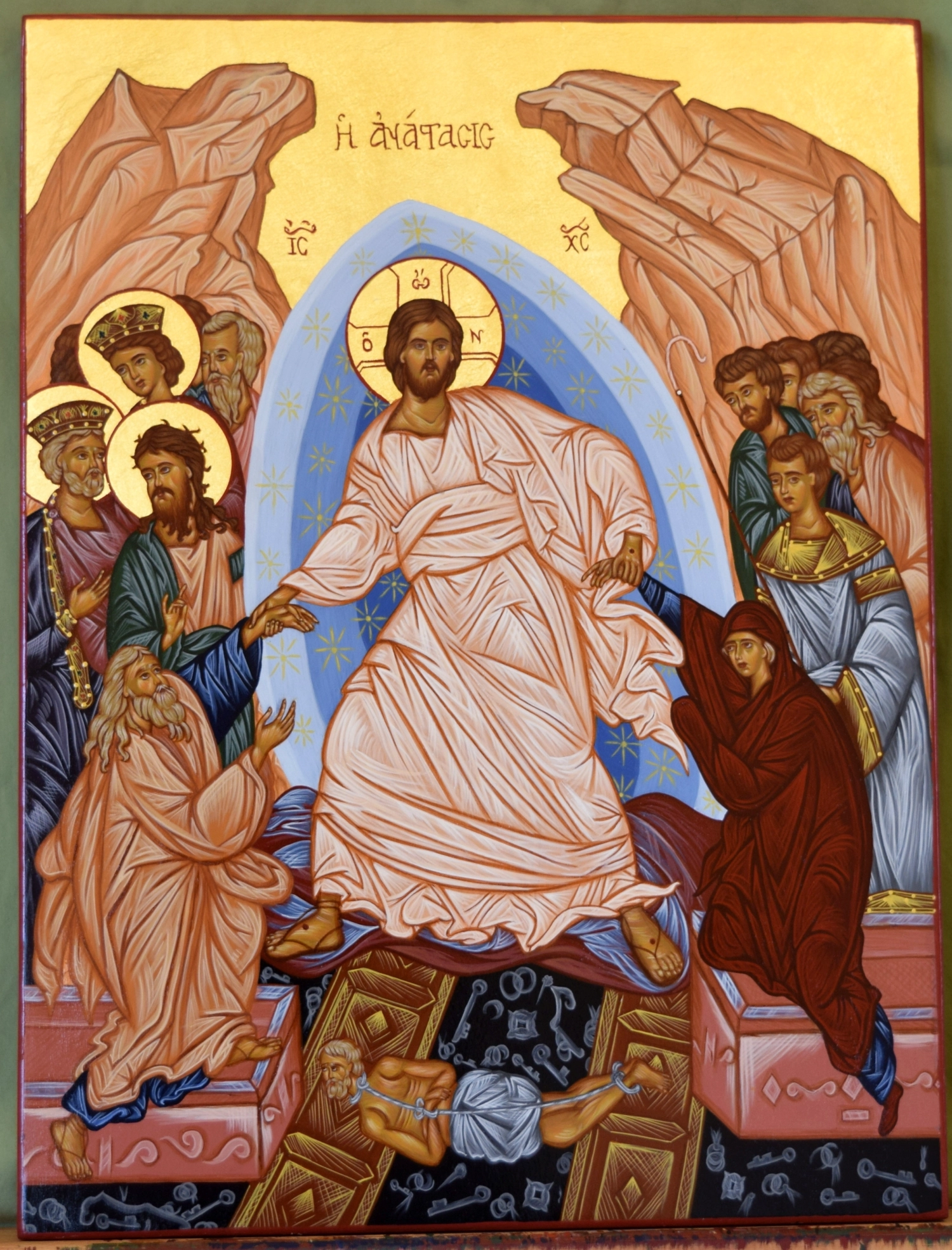 ذاك الذي في لحظة كسره انشق حجاب الهيكل واصبح لنا دخول معبد دون حاجب الى قدس الاقداس اي الى ملئ الحضرة الإلهية. ذلك الجسد الذي ايضا في لحظة كسره خرجت الألوهة التي احتجبت فيه منذ تكوينه في احشاء مريم البتول ونزلت الى الجحيم ففجرته ومنحت الحياة للذين في القبور.