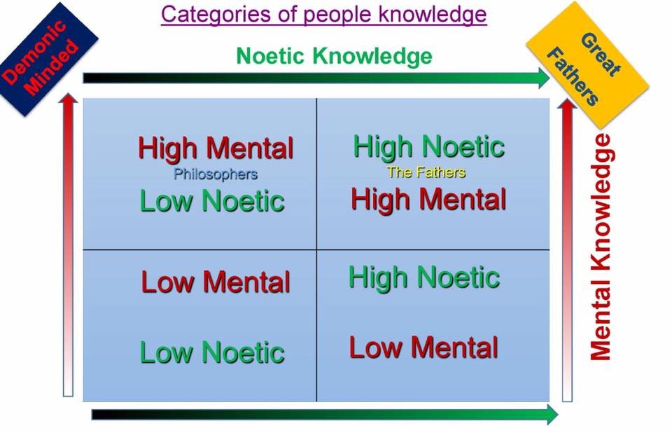 One of the keys to the understanding of the patristic wisdom and of the worldly wisdom is in this very clever grouping of knowledge under these four categories as figured out by Fr. John Romanides: